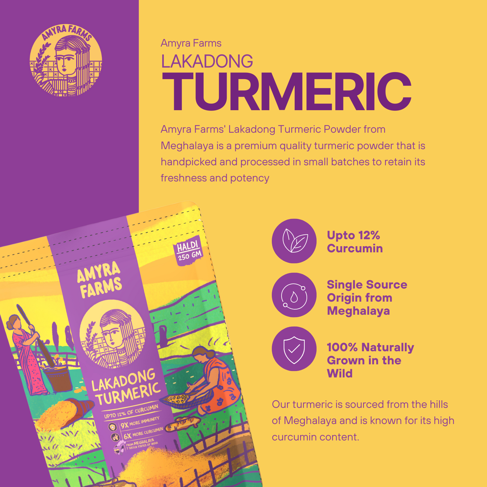 At Amyra Farms, we are committed to providing our customers with the highest quality products that are sustainably sourced and ethically produced. We take pride in offering you this premium Lakadong Turmeric Powder that is not only good for your health but also supports the local farmers and communities in Meghalaya.