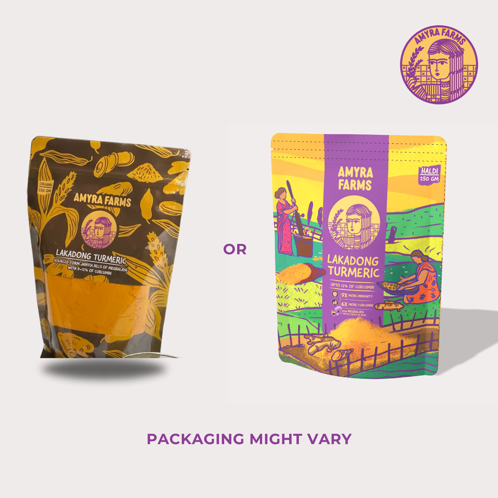Amyra Farms Lakadong Turmeric Powder from Jaintia Hills of Meghalaya is a premium quality organic turmeric powder (Organic Haldi Powder) that is handpicked and processed in small batches to retain its freshness and potency. Our turmeric is sourced from the Jaintia hills of Meghalaya which is known for its high curcumin content. Our turmeric has 9% to 12% extra curcumin than regular turmeric, making it a more potent and effective natural remedy for a variety of health benefits.